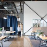 Bloomscape is a Detroit-based company whose mission is to transform people’s relationship with plants. They make it easy to buy plants online and have them shipped to consumers in specially designed boxes. They commissioned us to transform the interior of the modified structure into a workspace that could deliver a dynamic range of work and meeting spaces while providing a strong connection to the outdoors. Within the high-bay spaces of the building, the design and placement of two interior volumes create meeting rooms, focus rooms, and phone booths while simultaneously creating service spaces as well as a breakout nomad lounge that overlooks the north courtyard. M1DTW was responsible for the design of the work and meeting space finishes, casework components, furniture and furnishings, including the custom designed workdesks.