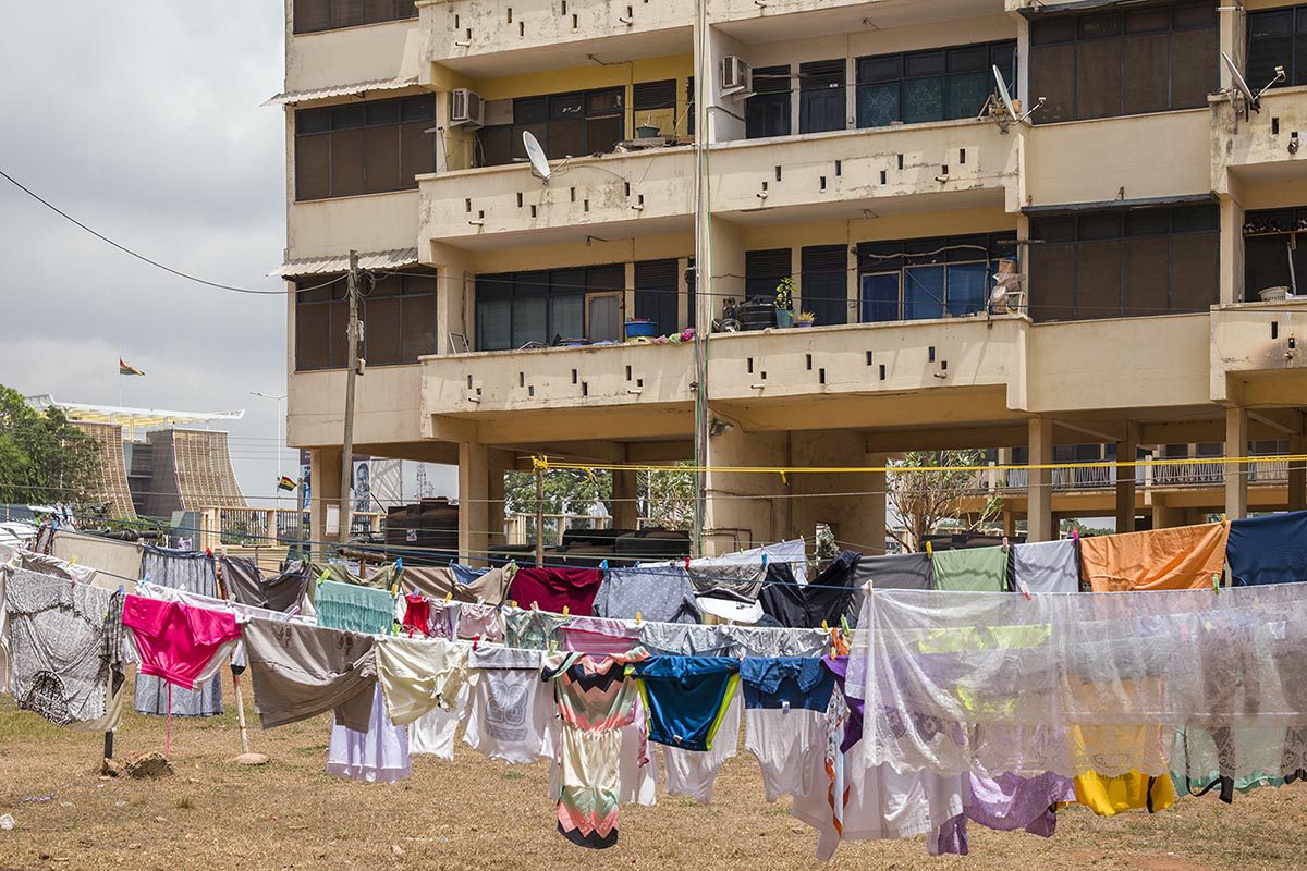 The exhibition centers on two encounters. The first was the collaboration between Ghanaian architect Victor Adegbite and Hungarian architect Charles Polónyi who, in the wake of Ghana’s independence (1957), designed housing schemes that responded to Ghana’s needs, means, and aspirations. Archival documents, analytical drawings, and contemporary photographs by Ghanaian photographer Eric Don-Arthur show how Adegbite’s and Polónyi’s buildings continue to structure life in Accra today. The second encounter takes place in the exhibition space between two archives, preserved by the architects’ daughters in the United States and Hungary. They reveal how the history of modern architecture is made possible by personal acts of memory and care.