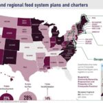 This map is from a report and webinar that offers a snapshot of national trends, and a directory of participatory food systems plans and charters that exist at state and regional levels across the US. It is intended to facilitate network building and co-learning among practitioners leading these efforts and groups interested in launching their own plans and charters. We collected information from publicly available websites and followed up with lead organizations to review information relevant to their state. We looked for plans and charters that: a) are systems-based and cross-sector (covering the entire food system); b) propose visions beyond 2021, and c) were participatory and collaboratively developed (those that engaged multiple stakeholders and crowdsourced ideas across their state or multi-state region). In addition to finding that nearly 60% of states have food systems plans or one under development, we found that: Michigan was among the earliest to launch a Good Food Charter, in 2010; universities and multi-institutional partnerships are leading two-thirds of efforts; government agencies are leading only 19% of plans and charters, but 48% are being funded, in part, by state government, 10% by local government and the majority (62%) by foundations; and participatory strategies used to develop these plans and charters include summits, working groups, public meetings, interviews/focus groups, workshops and surveys.