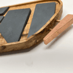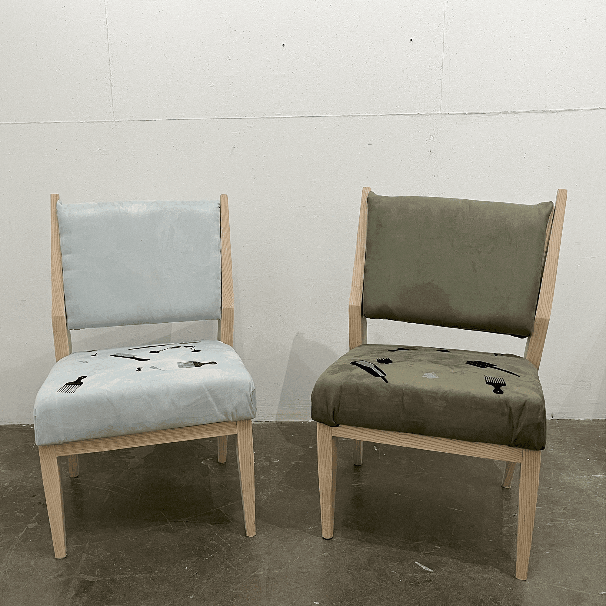 These projects explore the technique of layering to create new experiences and texture often employed by the architect Gio Ponti. The tray design “Veriety of the Senses” usesContrasting materials, such as wood and slate, create smoothness and roughness, with unexpected shadows cast by the uneven surfaces and asymmetrical curves. For the chair design, “The shop at lunch” uses layers of parts and surface embroidery to tell the story of a day at the beauty shop. “Down the street and around the corner is the stop for a fresh cut or straight-back braids on a busy Saturday. At lunch, the shop…