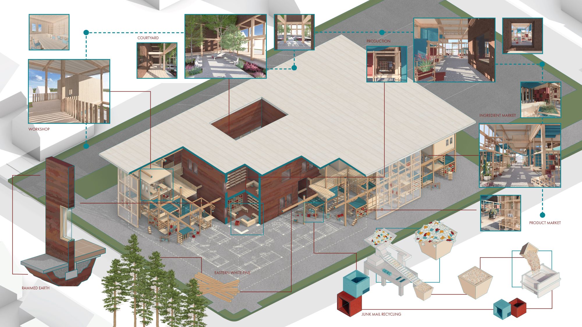 The USPS’s current work is largely involved with package delivery, especially with the decline of paper mail. But with its network and infrastructure, the USPS has the potential to be more than just a passive handler of products. This project proposes that the USPS take on a more active role in commerce by connecting suppliers, makers, and consumers, by being involved in the production and distribution of goods. Today, advancements in service focus on convenience and remove social interaction, thus increasing social isolation. This project addresses this issue through a sensory-rich Bioregional Market to reintroduce meaningful interactions within the physical…