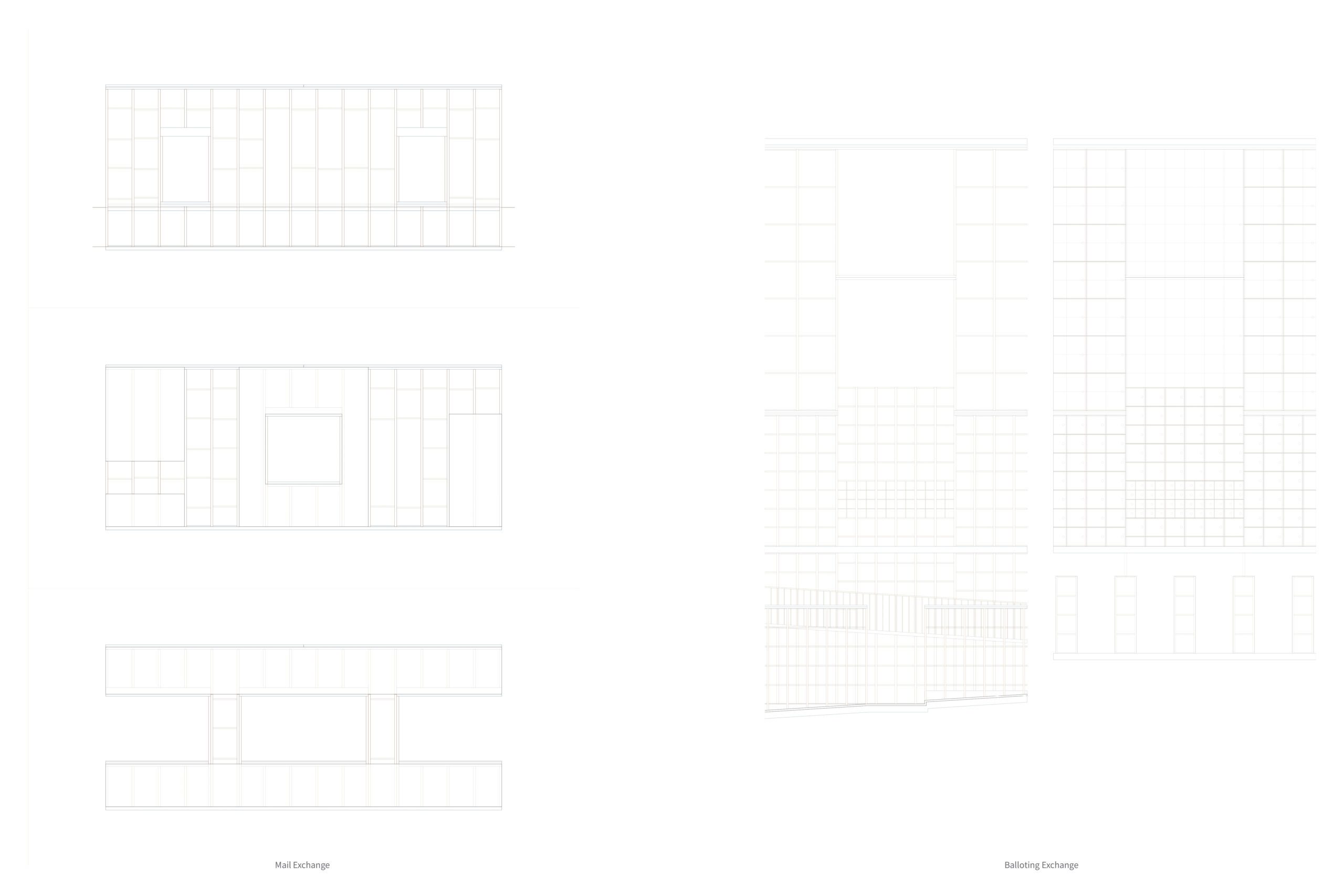 After centuries of human colonization, the Earth, with its retaliatory natural disasters and climate, forces humanity to challenge its domesticity. Through three exchange spaces – for food, mail, and balloting – the Belle Isle Sorting Exchange feralizes our daily domestic practices and deconstructs the architectural elements that stage them. Food is foraged, mail becomes a trade of cultural artifacts, and balloting is ritualized, the impersonal ballot replaced with a surrendering of personal items to a collective archive. In an increasingly capitalist and mechanized present, the project envisions a future where materials and manual craftsmanship are valued, and a reciprocal relationship…