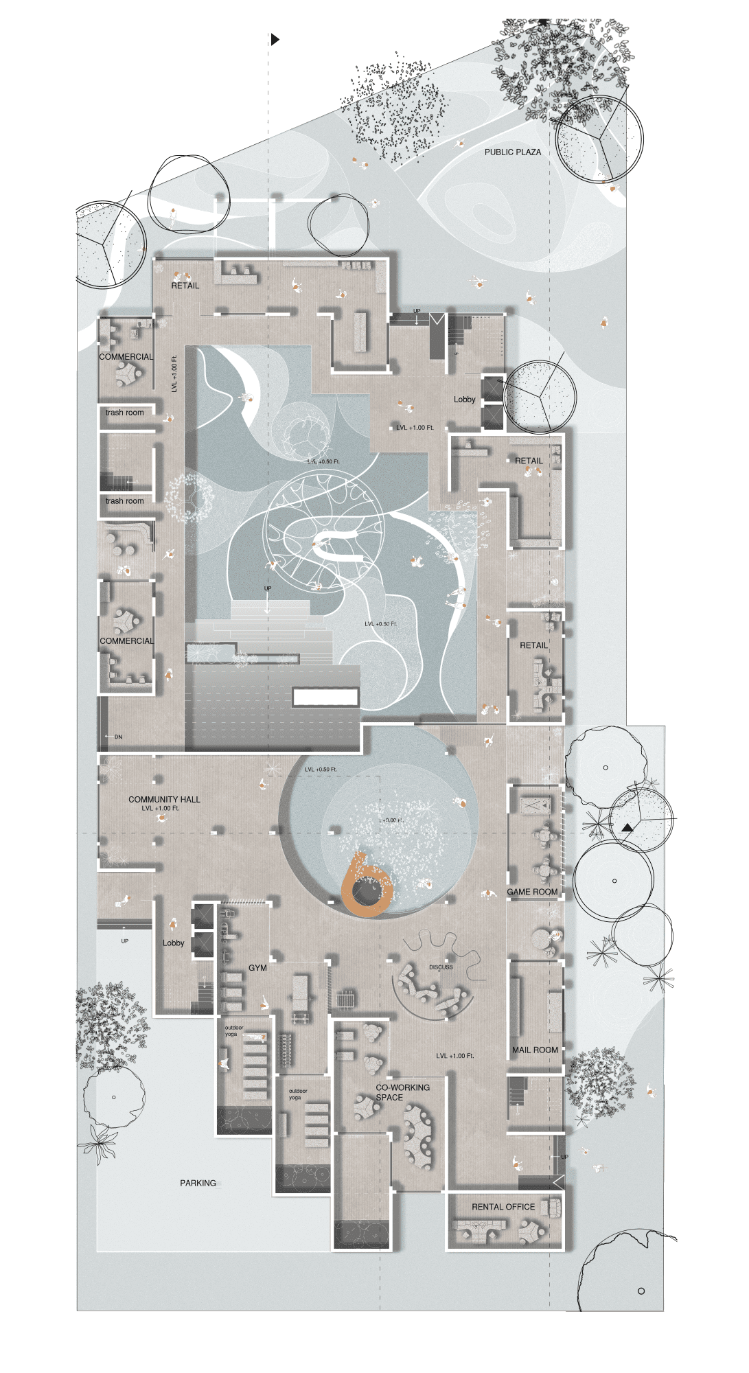 Housing in LA is often static, expensive, and exclusionary. Fractal Foundations challenges this by introducing modular, prefabricated units that evolve with families over time offering adaptability without financial strain. By prioritizing cost efficiency, rapid construction, and climate-responsive design, the project balances affordability with livability. Thoughtfully placed open spaces and pathways stitch together different social fabrics, ensuring both connection and privacy. In embedding low-income housing within an affluent neighborhood, the project is more than shelter it is a statement on equity, questioning who gets to belong in the city and how design can help bridge, rather than reinforce, divides.