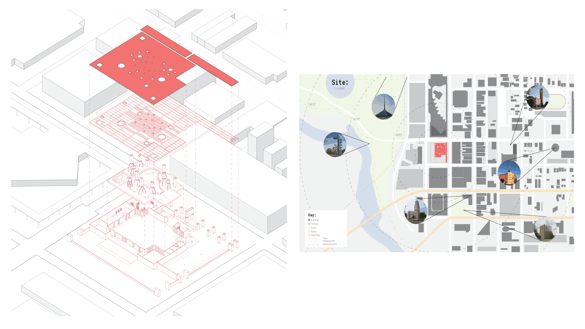This project merges a post office with a resilience hub, both centered on communication. While post offices bridge physical distances, resilience hubs provide essential services like internet access and education. Inspired by Kevin Roche’s use of arcades for connection, I reimagined circulation and focused on the building’s large hollow columns (6x6x14 ft). Each column takes on a unique function, workspace, storage, water retention, or satellite support, creating a modular, self-sustaining environment. By repurposing these historical elements, the design blends past and future, ensuring accessibility, adaptability, and resilience for the community in Columbus, Indiana.