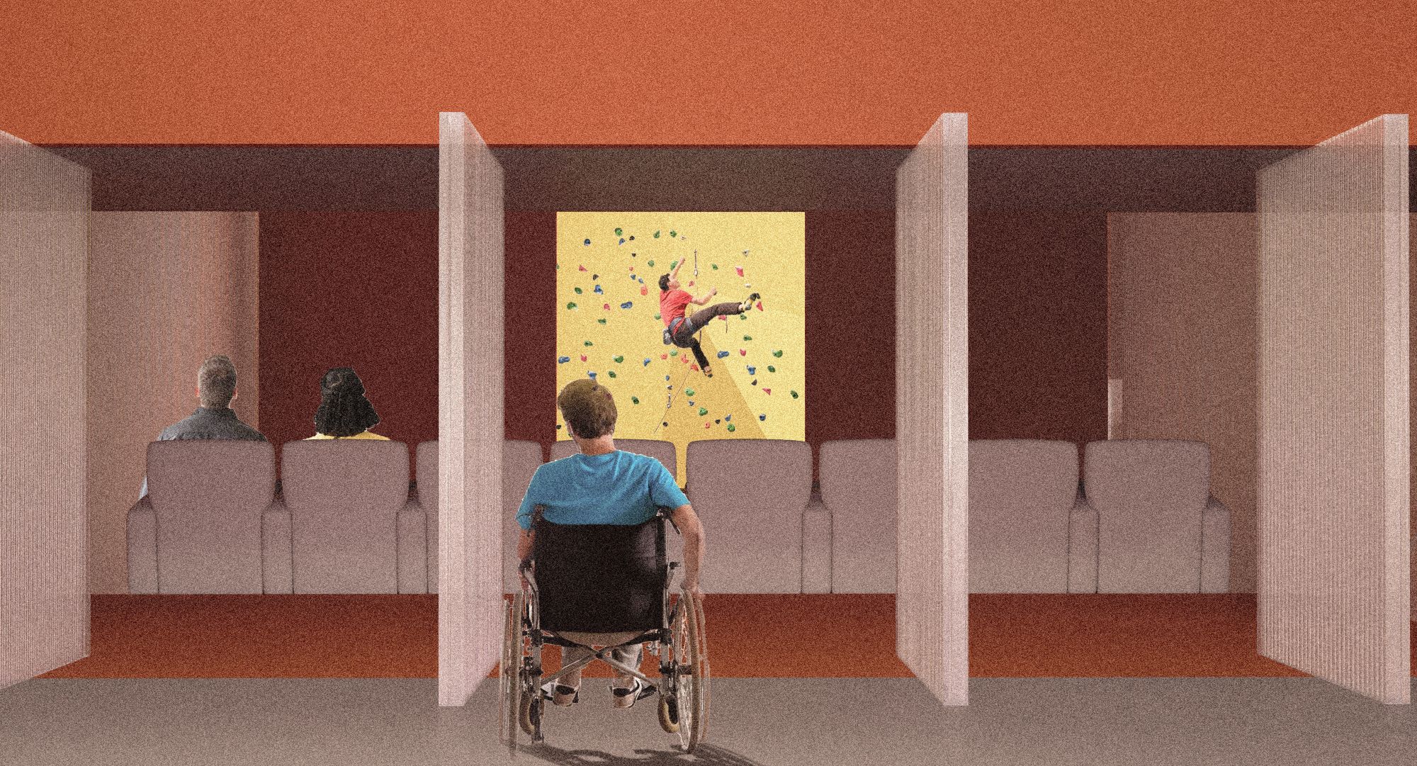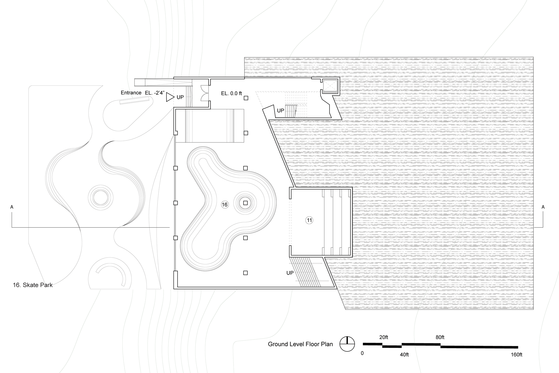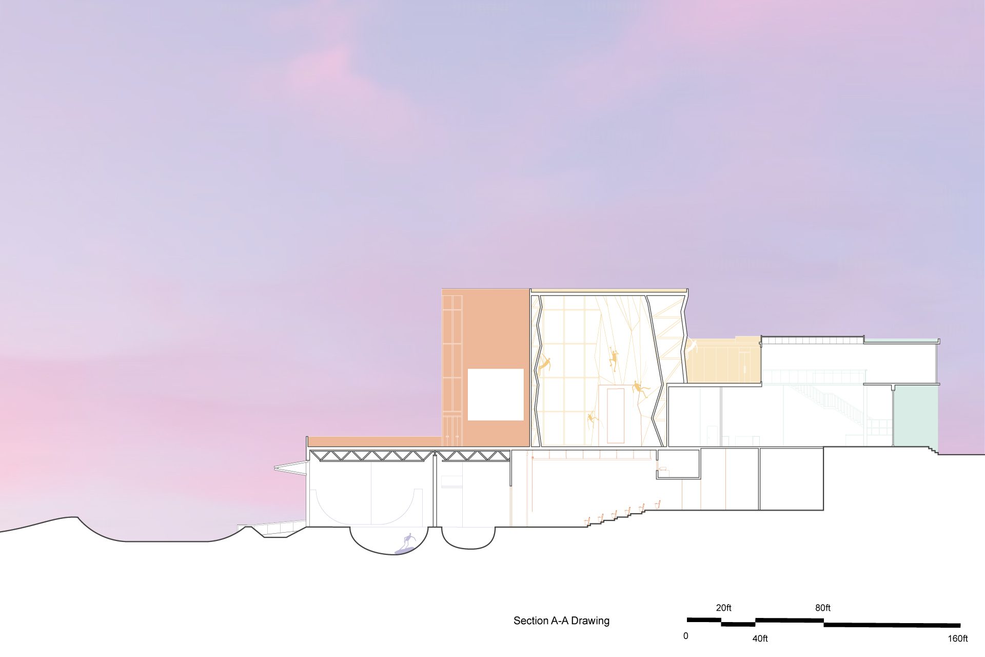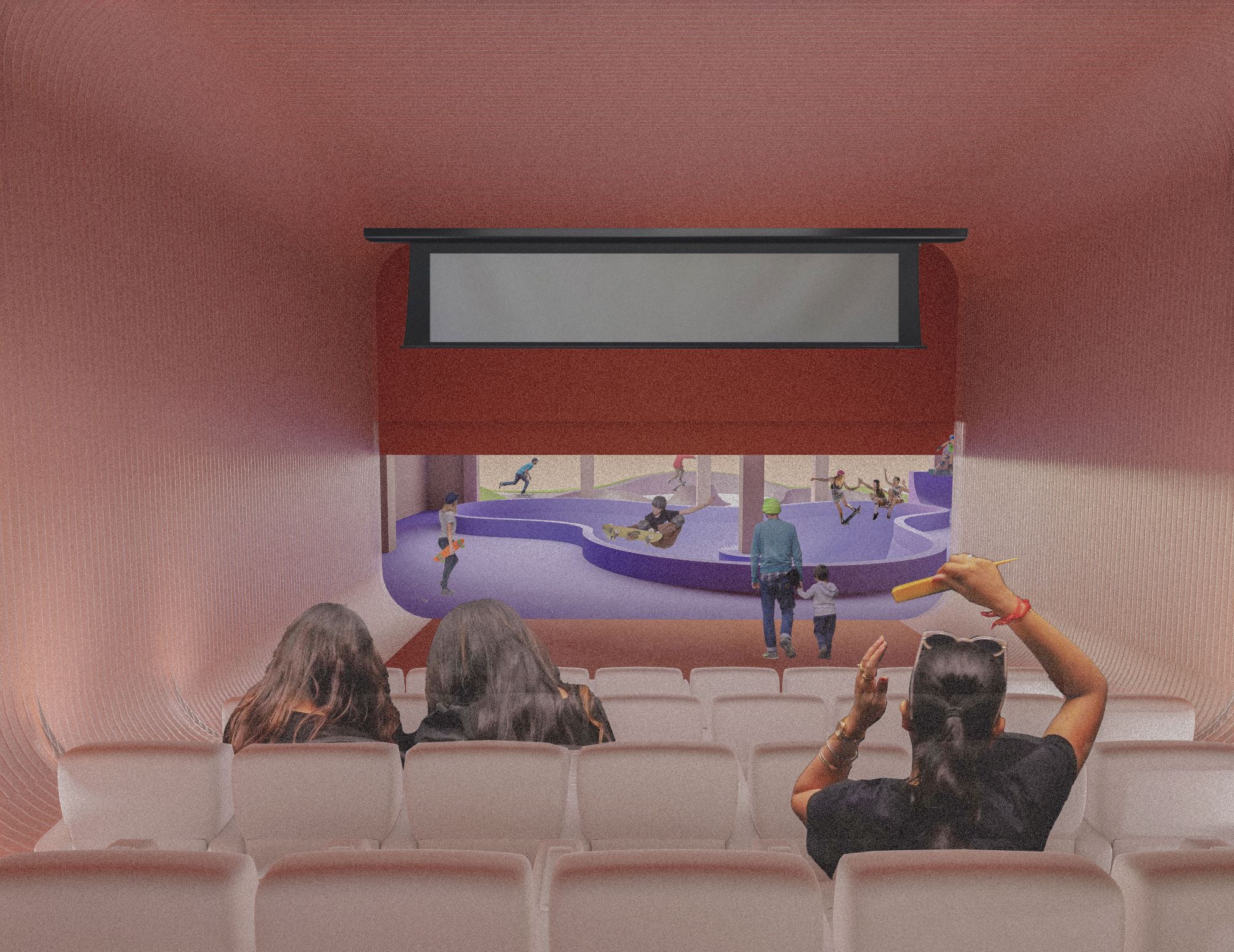 Downtown Ann Arbor is a cultural hub, home to the public library, independent theaters, art galleries, unique shops, and diverse restaurants. Surrounded by the University of Michigan, it serves as a vibrant gathering place for students and the community. This project, located in the west side of downtown Ann Arbor, envisions an indoor extreme sports center with integrated theaters for visitors. Designed for year-round use, it aims to engage both extreme sports enthusiasts and the broader public. Inspired by Alfred Hitchcock’s Rear Window, the theater features a retractable screen that, when lifted, allows audiences to view live extreme sports activities…