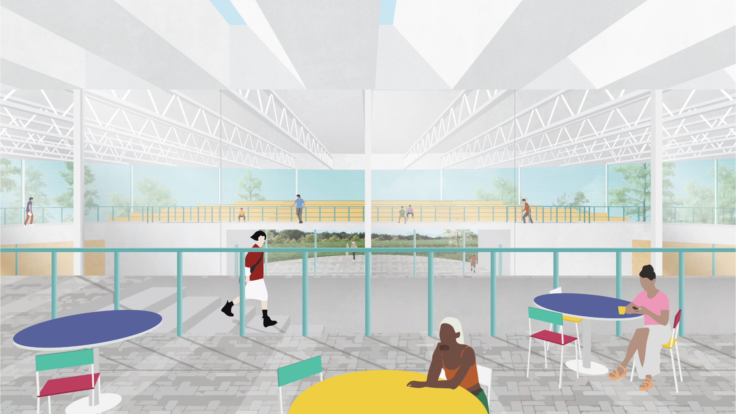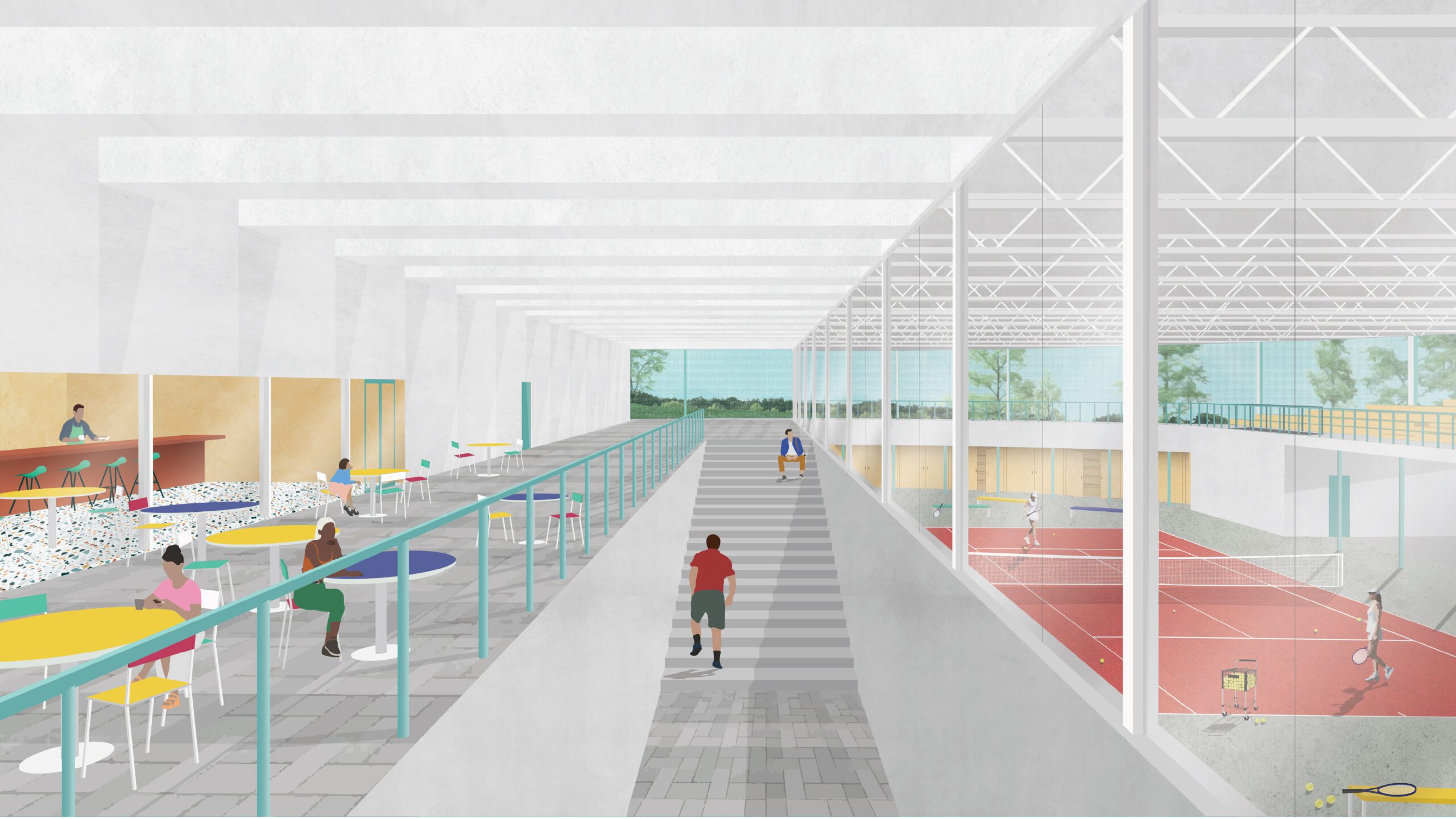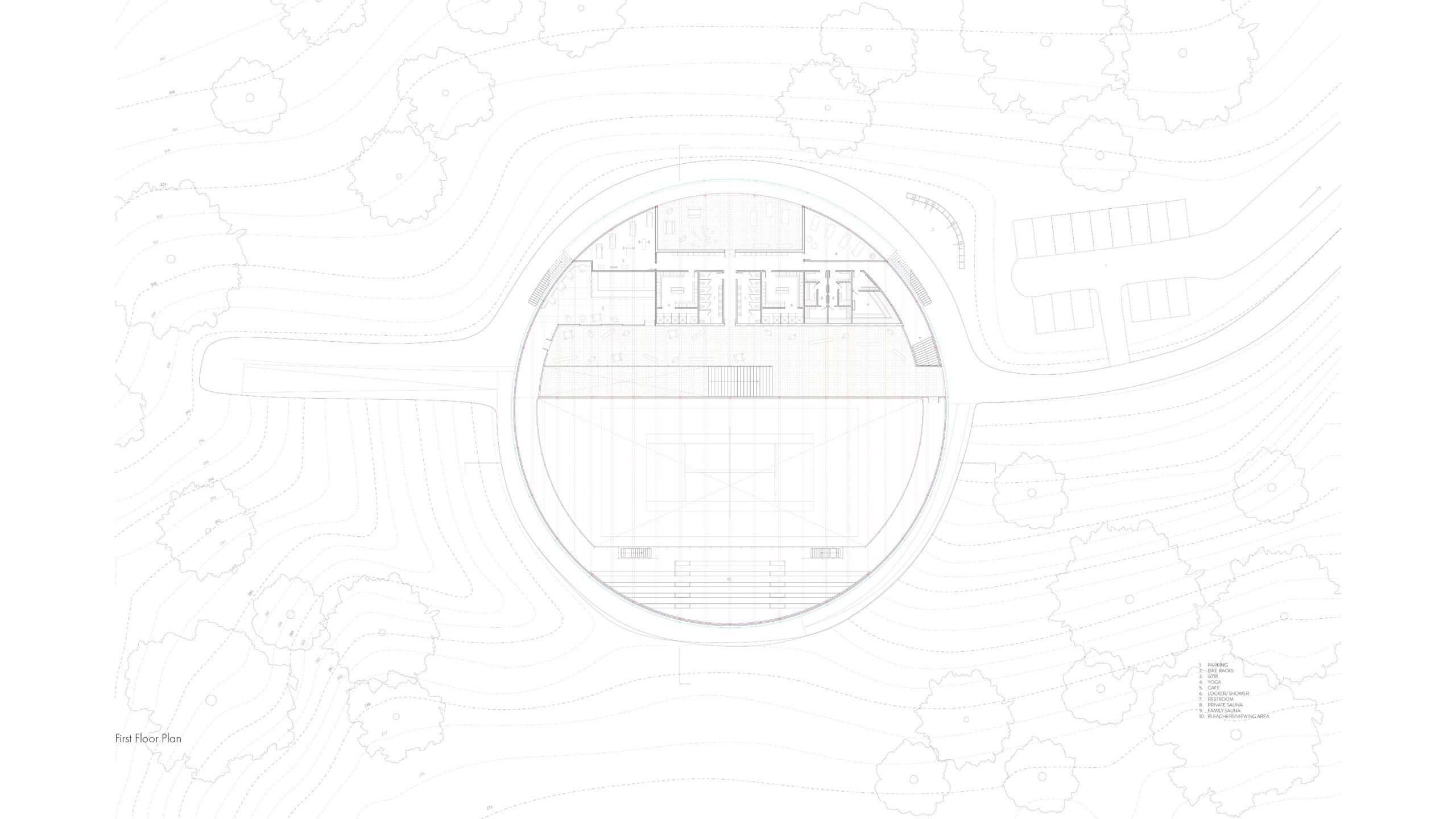 At the heart of this fieldhouse is the concept of the “interface”- a defining element that both separates and unites. Drawing inspiration from the tennis court, where a simple net delineates competing grounds yet facilitates a lively back-and-forth, this project delves into how interfaces can be more than just dividers but dynamic mediums, pivotal in facilitating the interplay and exchange between two distinct realms. A linear walkway splits the form into two main volumes: the animated “field” and the restorative “house”. And it is through interfaces that spaces find their meanings – not as isolated fragments but as a cohesive…