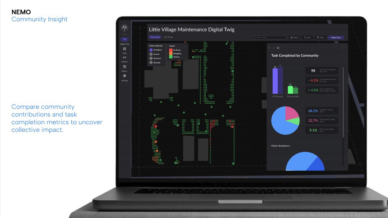 This Urban Technology studio teaches students to develop strategies for change by creating proposals that are situated in a specific place, addressing a system in meaningful ways, and seeking positive impacts such as sustainability, justice, and humanity. In this project, students recognized urban landscapes as complex, living systems that require continuous maintenance and thoughtful management. Their dynamic nature, competing interactions with the surrounding systems, and volatile climate effects makes this a persistent challenge. NEMO (Natural Environment Maintenance and Operations) introduces a four-part urban strategy solution to address these issues, combining a real-time plant data sensor network with physical interventions, digital…