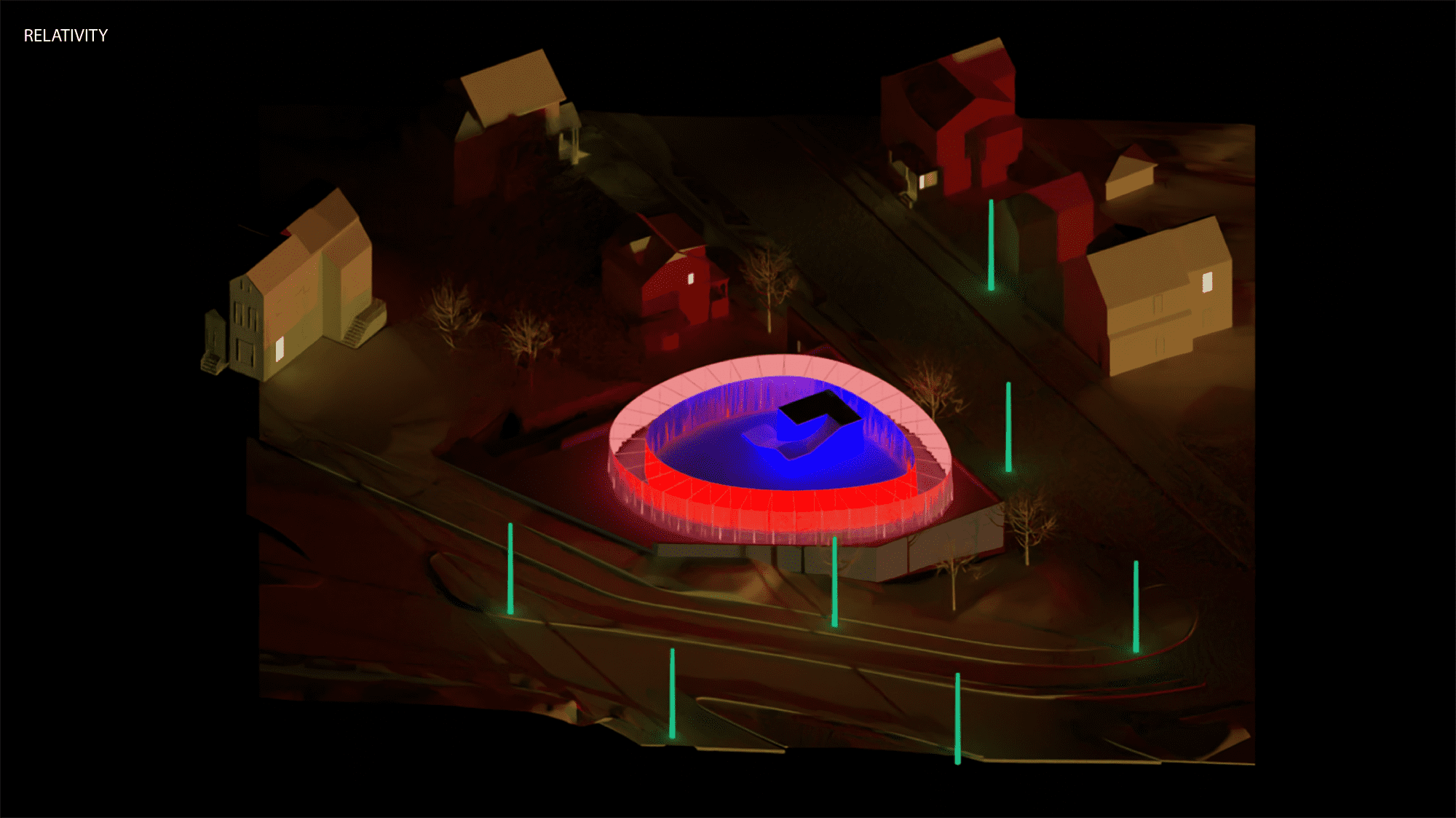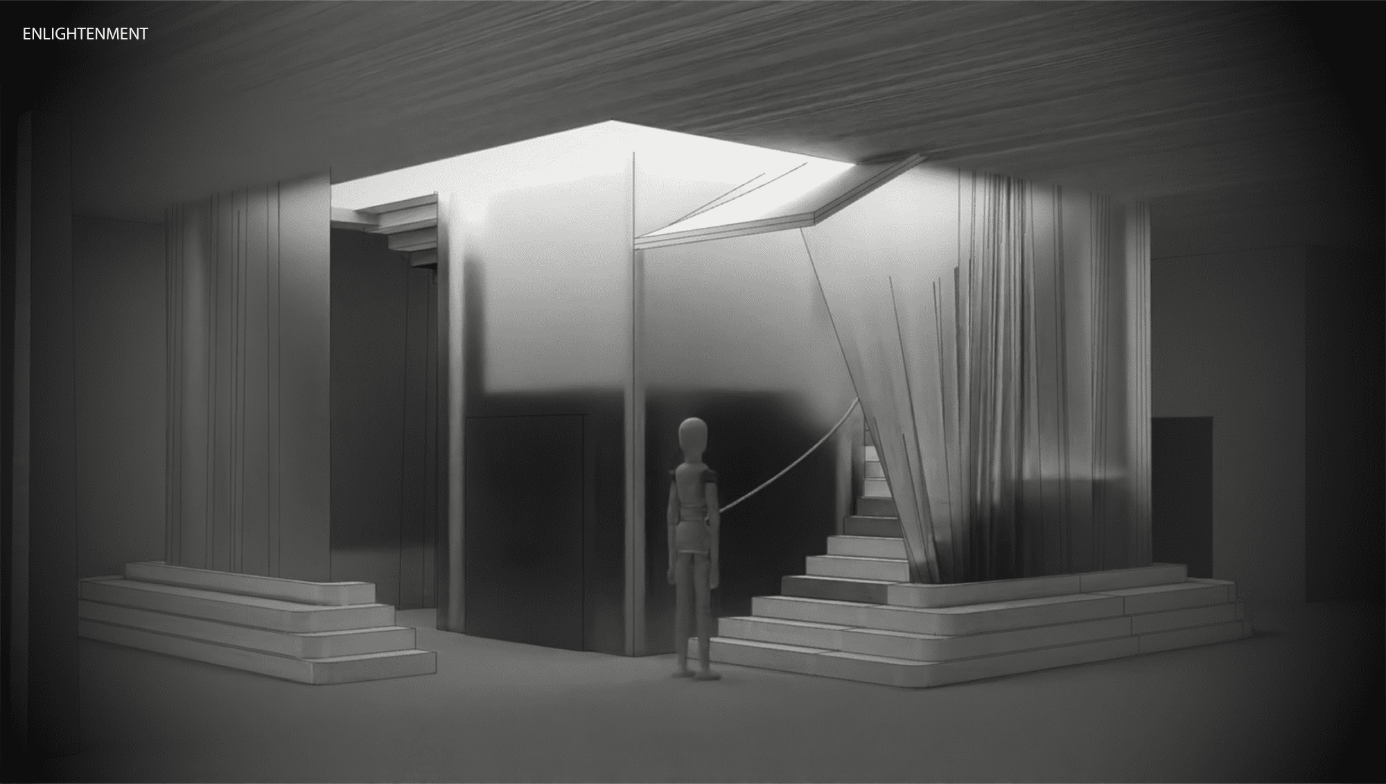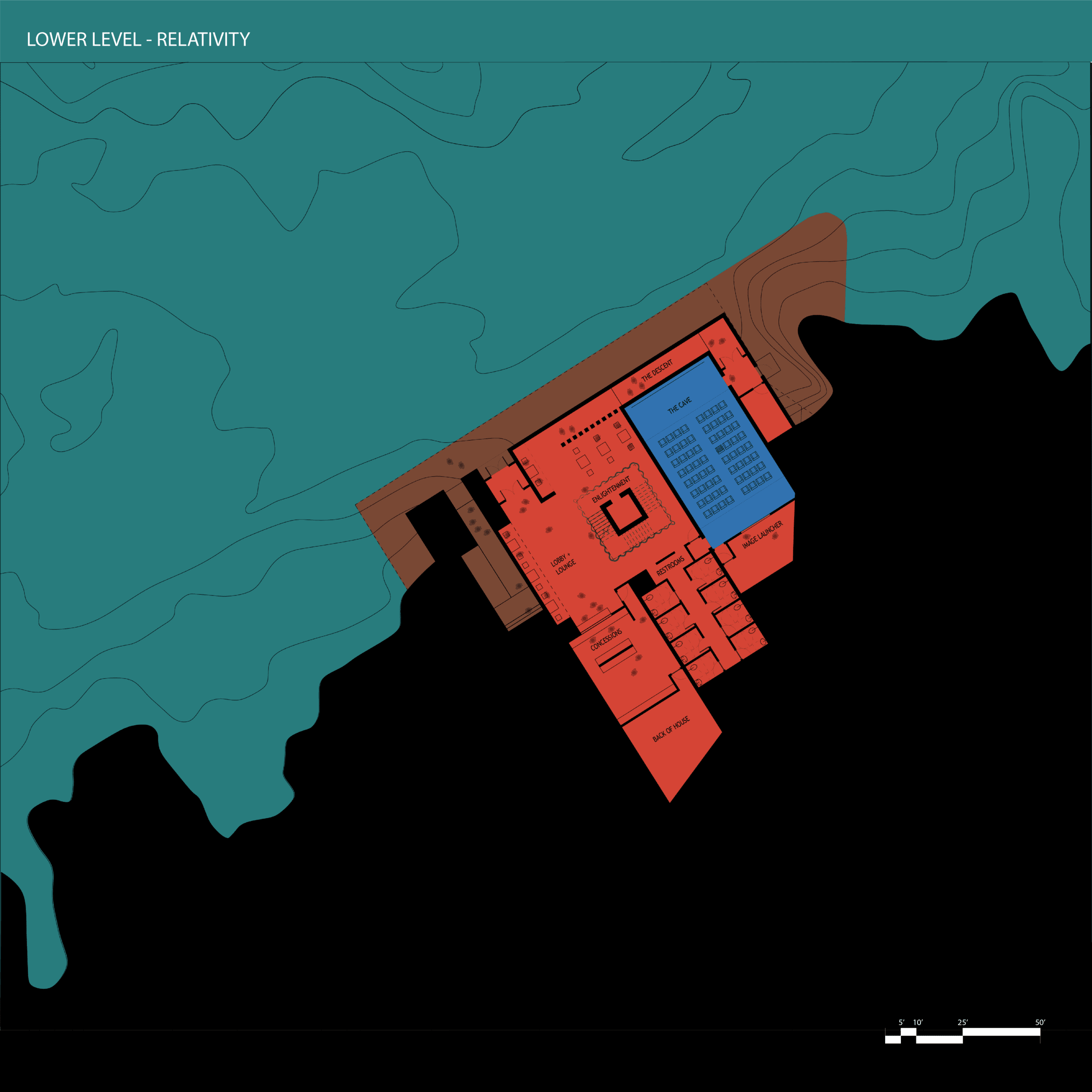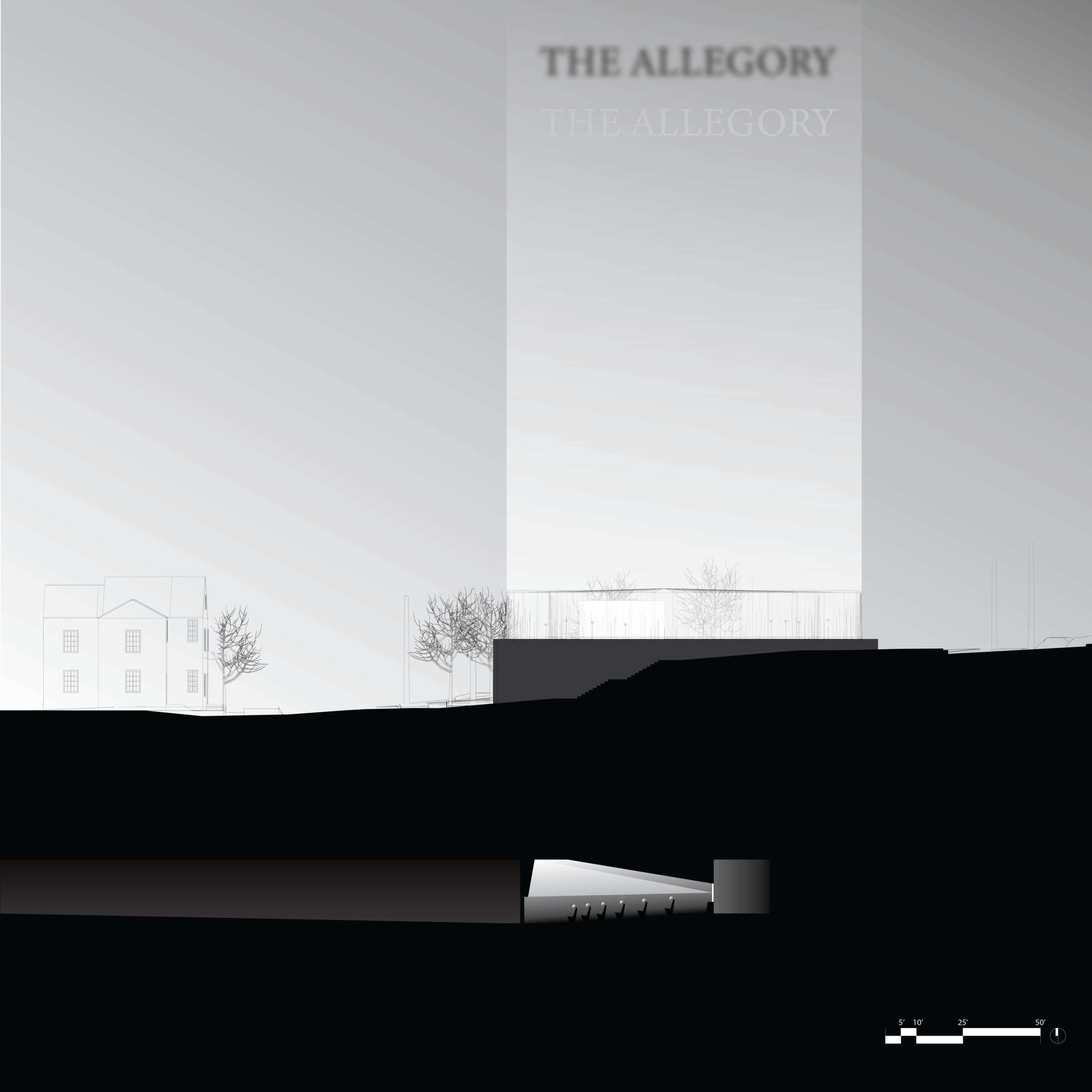 Acknowledging the ways in which the physical embodiment of an institution might limit its ability to adapt to technological and social changes, “The Allegory” uses a snapshot of a traditional cinema as a foundation for spacial experimentation in film institutions. Ideas of relativity in cinema consumption are explored through Josef Albers’ study of color relativity in his work “Homage to the Square”, represented here as “Protected Blue”. The conjuncture of the alternative theater settings ask questions about how our contextual awareness and relative perception of reality has the potential to change the cognitive and social impact of watching film.