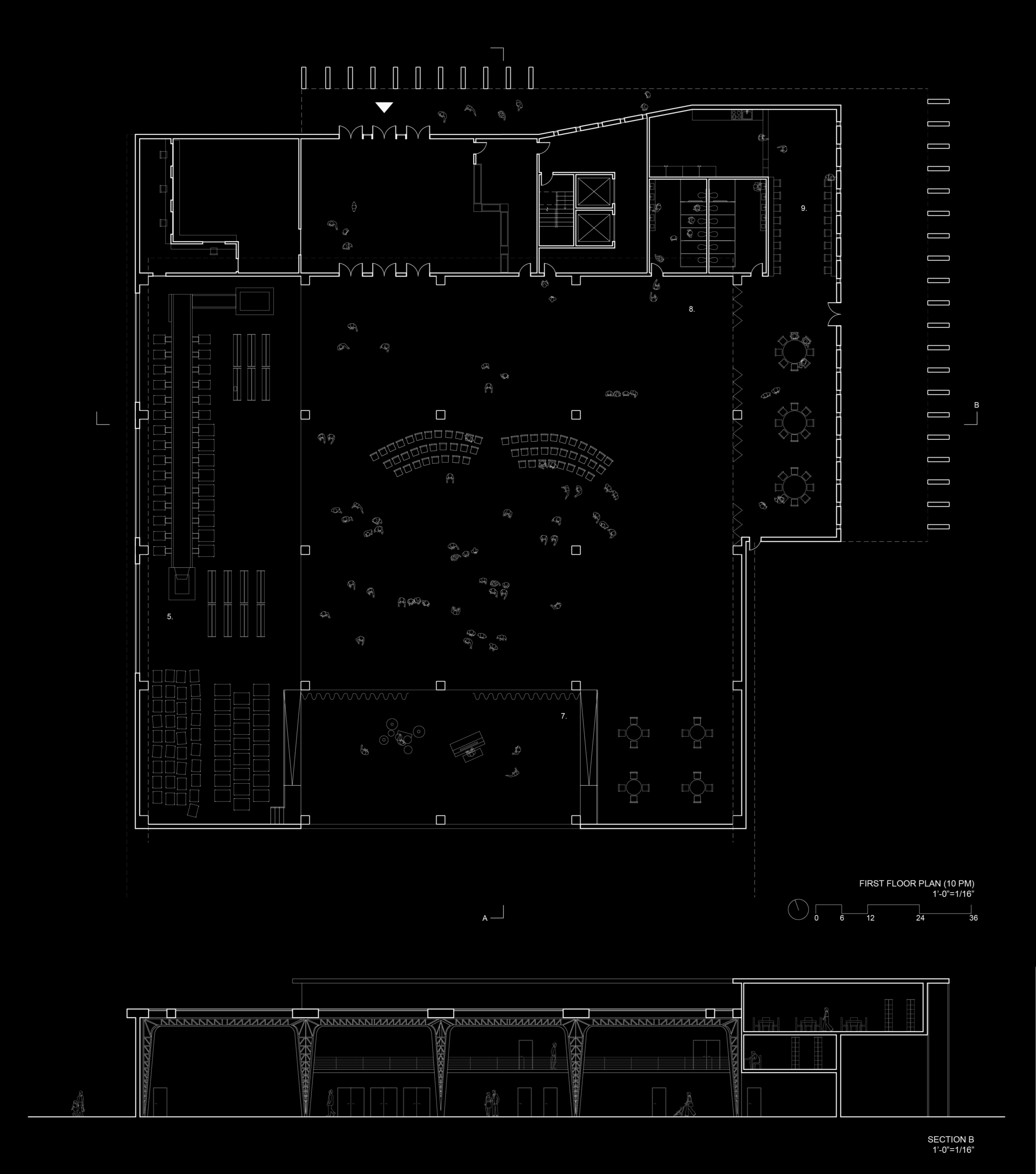What happens after hours? Once closed, a post office remains just that. This adaptive reuse project reimagines it as a shed-like structure, extending beyond postal services into a flexible community space in Detroit. Featuring a transformable warehouse with movable shelves, carts, and conveyor belts, it adapts to various uses. Inspired by Detroit’s artistic and musical heritage, it can host events, fostering community engagement. The heavy existing brick perimeter contrasts with delicate skylights and a lightweight structure, balancing solidity and openness. The design explores the dynamic tension between fixed and adaptable elements, allowing spaces to shift with time and function.