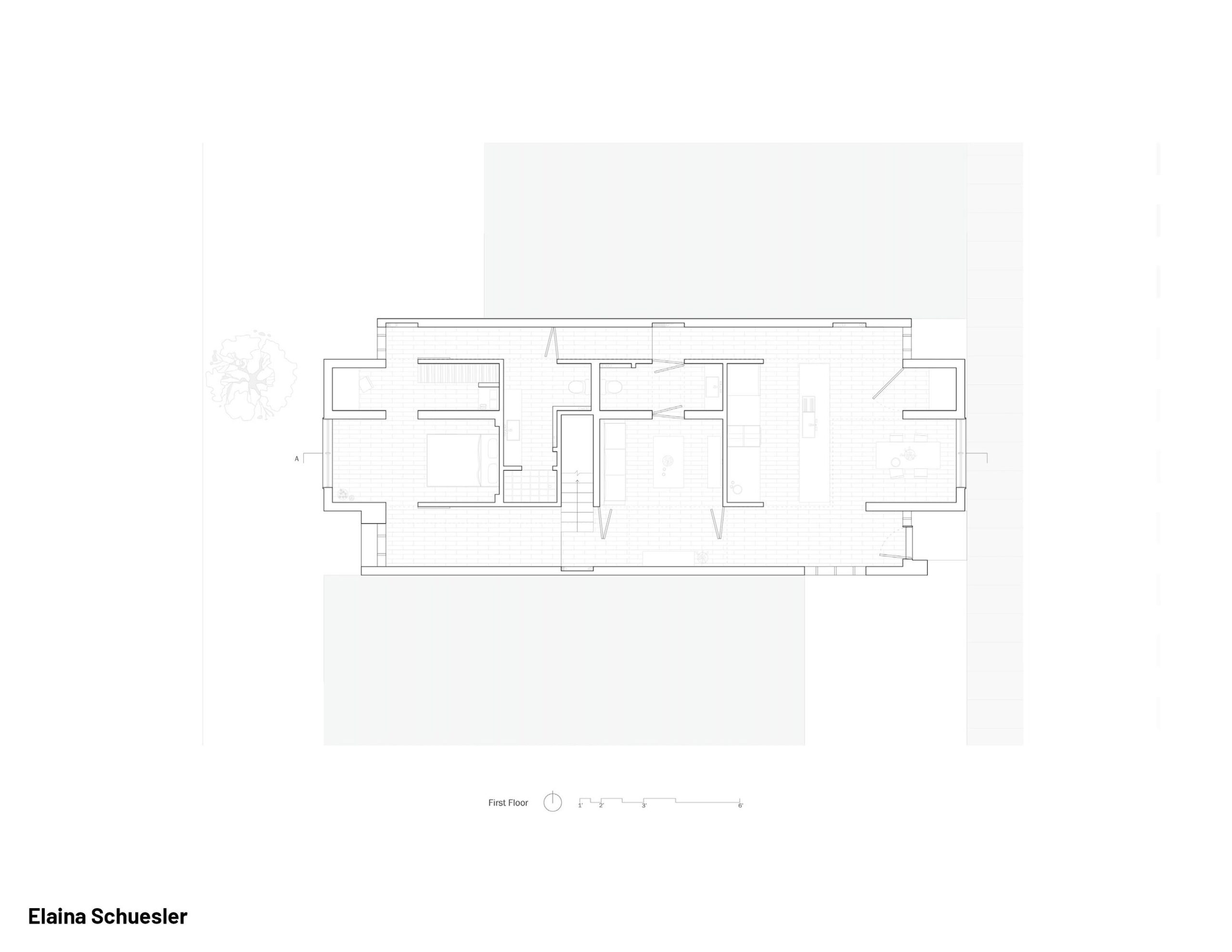 Each student produced three analytical design projects to examine their precedent critically. Armed with this understanding, the fourth and final project, seen in this year’s show, was a redesign of the original house imagined in a North American contemporary context. Though the studio’s attitude toward historical precedent was not one of direct quotation, the redesigned project is intended to be in a knowing and creative dialogue with its predecessor, and therefore, with the many predecessors before that. Ultimately, the studio posits that relevant architectural invention, and newness itself, is intrinsically tied to history.